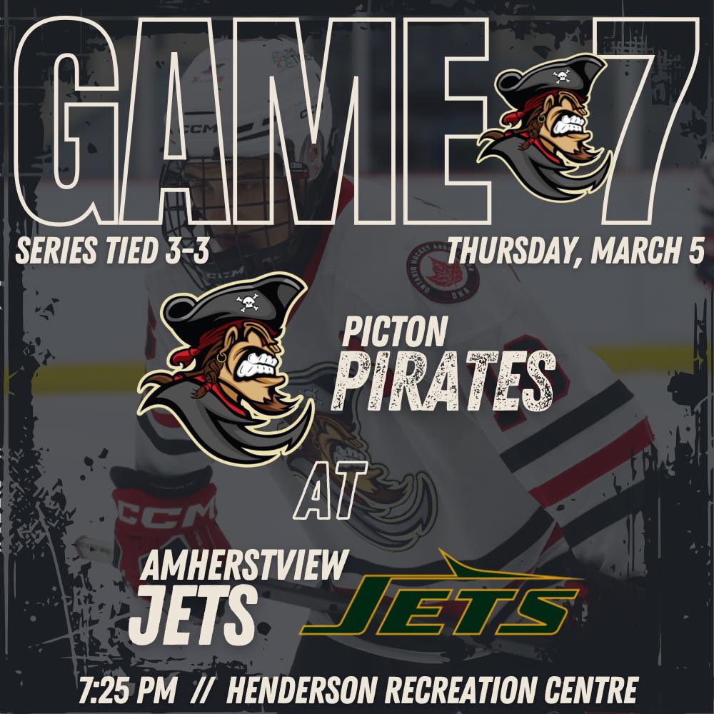 In front of a packed Henderson Recreation Centre crowd of 945, the Picton Pirates showed exactly what championship hockey looks like — grit, discipline, and belief — grinding out a 3–2 Game 7 victory over the Amherstview Jets to win the series.