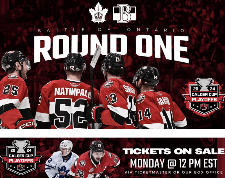 It’s Playoff Hockey for your Belleville Senators – GAME ONE – THE PLAYOFFS ARE HERE!Tonight is game one of the Calder Cup Playoffs as the Belleville Sens get set to host the Toronto Marlies in a best-of-three series. A reminder that gates open at 5:30 pm and the first 3,000 fans will receive a free rally towel! Don’t miss out!