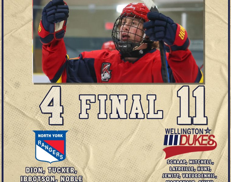 The Wellington Dukes exploded on offence to hand the North York Rangers an unlucky 13th loss in a row on Thursday night. The Dukes piled 11 goals in the North York net in an 11-4 shellacking of the last-place Rangers, with Ryan Schaap