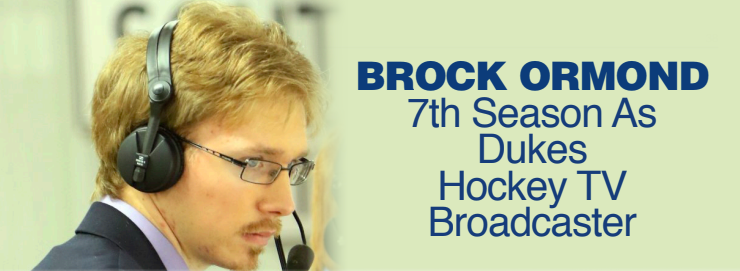 The 25-year-old is entering his seventh season as play-by-play announcer for Dukes broadcasts on HockeyTV and YourTV Quinte. He also writes game reports for the Ontario Junior Hockey League club.