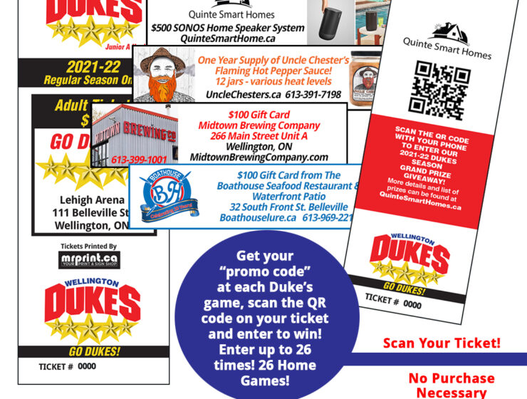 fans can enter the contest by scanning the QR code on their ticket/pass or by visiting QuinteSmartHomes.ca and clicking on the contest link and entering the unique promo code for that game.