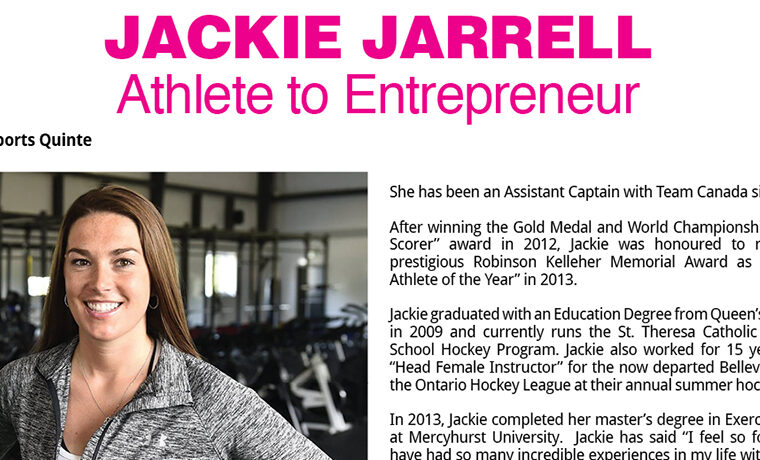 Jackie Jarrell was born and raised in Corbyville, Ontario growing up on her family dairy farm, RJ Farms. She played minor hockey with the boys Belleville Bobcats “AA” and the Quinte Red Devils “AAA.”