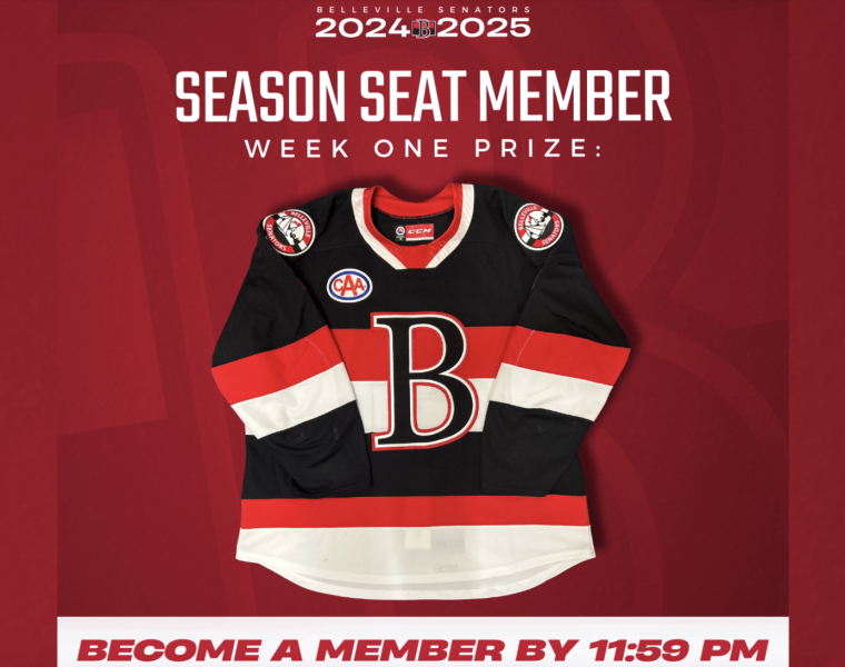 Our first Early Bird Season Seat Member prize closes TONIGHT. Renew your seats by 11:59 pm to be entered to win a Belleville Sens replica jersey! All those who become a member before April 1stÂ