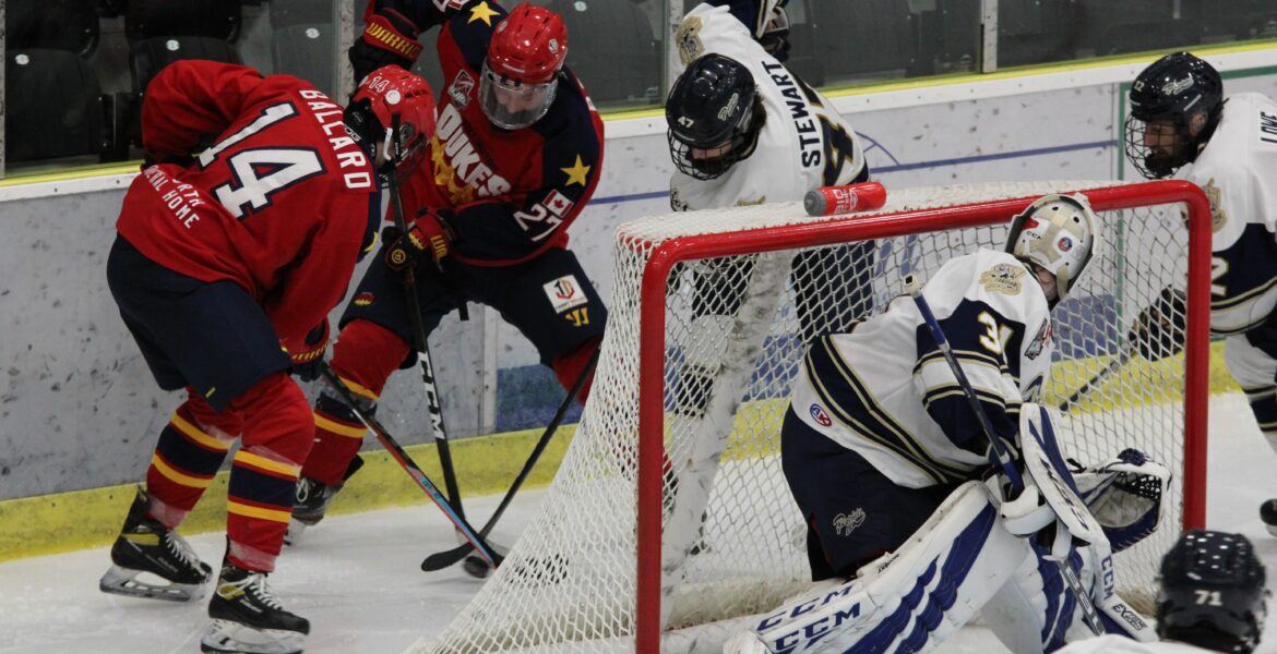 “We just kept it simple all night pushing pucks forward, moving north and trying to play as simple as we could to get shots on net,” said Joynt, who’s second-period goal put the Dukes up 2-0 after Ballard opened the scoring with the lone goal of the first.