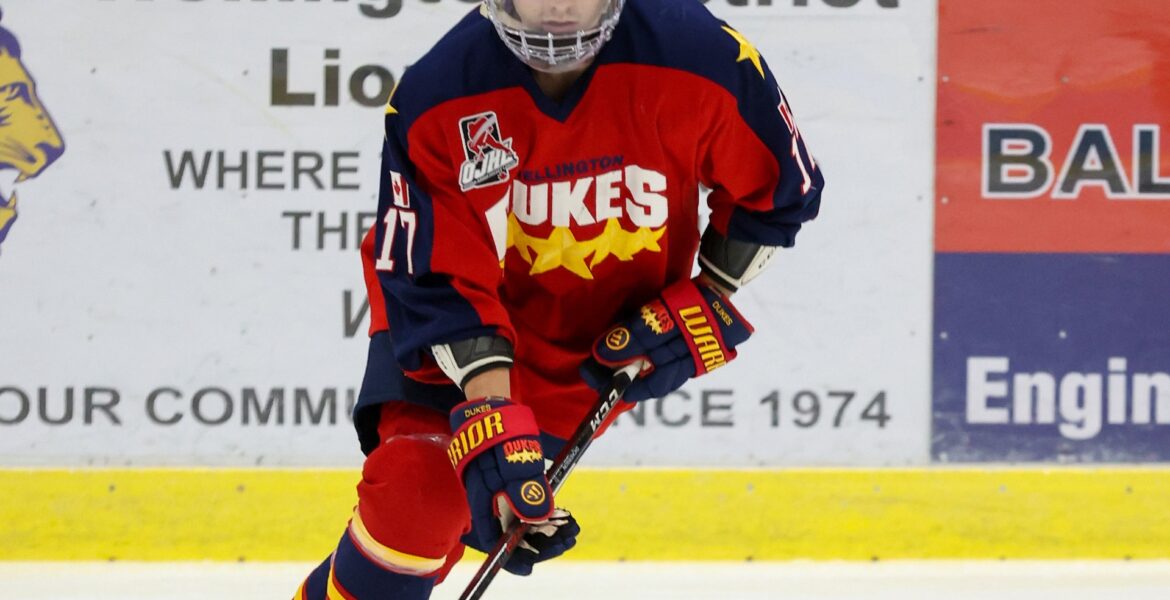 (Graham Dickerson scored his first goal for the Wellington Dukes on Thursday night against the St. Michael’s Buzzers. Photo by Ed McPherson/OJHL Images)