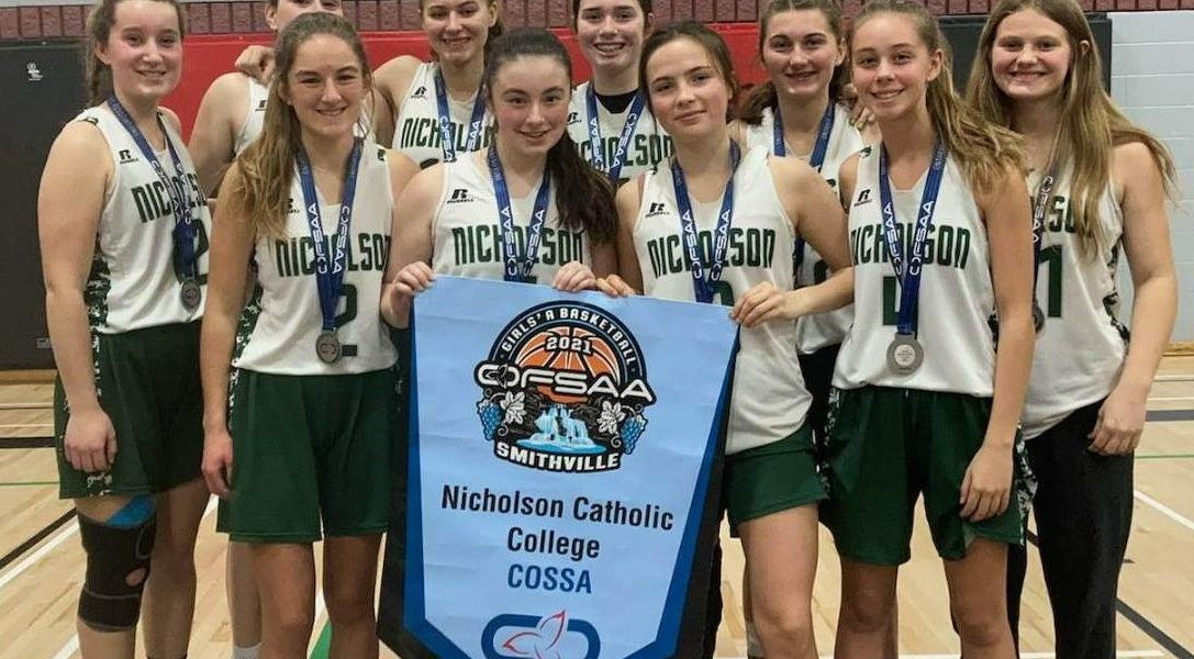 Belleville’s Nicholson Catholic College Crusaders captured the silver medal at the Ontario Federation of School Athletic Associations (OFSAA) girls ‘A’ basketball championship in Smithville in November. Pictured members of the team are: (front, from left) Anna Walsh, Grace LaCroix, Madison Lees, Chloe Knapp; (back, from left) Brynne Barrett, Courtney Lambert, Kira Fiar, Charlotte Farrell, Sarah Paul and Evelyn Shakell. (Nicholson CC photo)