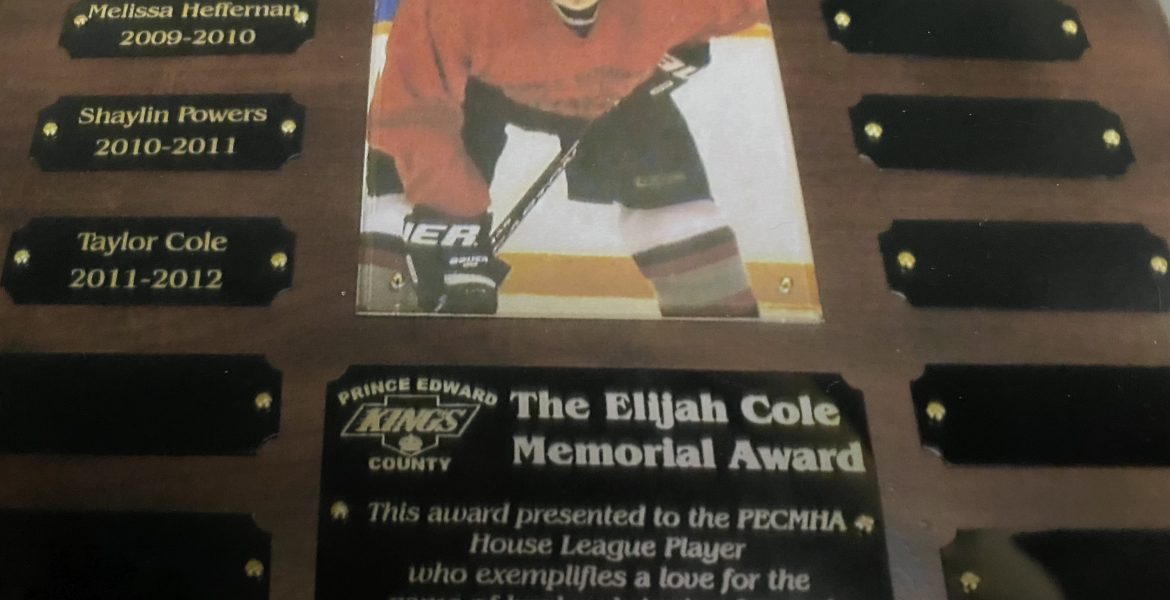 Since his passing in 2008, the Prince Edward County Minor Hockey Association has handed out the Elijah Cole Memorial Award. It is awarded annually to the U18 (formerly midget level) house league player who exemplifies love for the game and bringing enjoyment to their teammates.
