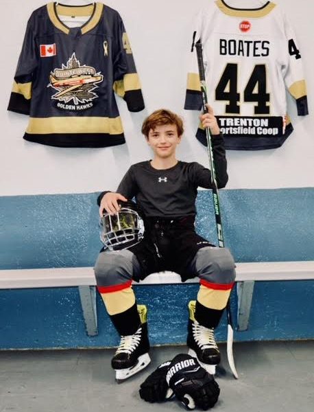 Connor, who is 13, plays hockey for the Quinte West Golden Hawks U14 team. He’s played the sport since he was three years old and at the rep level since he was six. “I played hockey my whole life and he’s got an older brother who’s 16 that plays rep hockey here in Trenton, too,” his dad, Mike Boates, said.