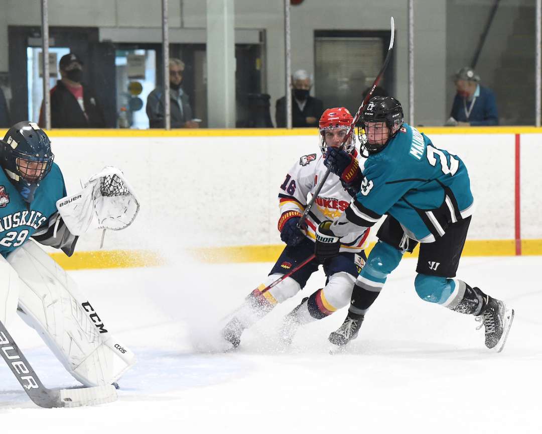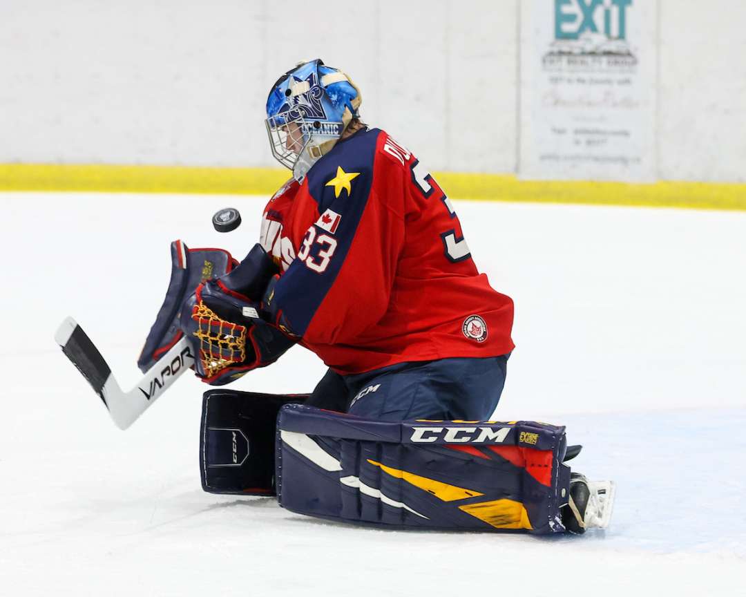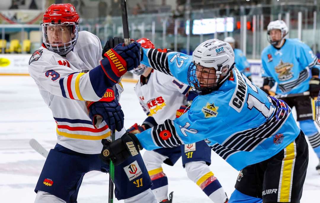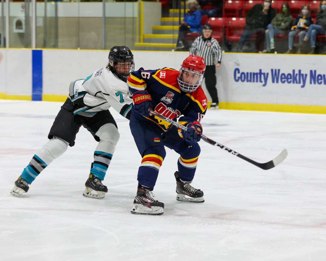 Aiden MacIntosh scored twice and Dalton Bancoft had a four-point outing as the Golden Hawks downed the Dukes 5-3 in Game 2 of the Hasty P’s Challenge Cup, an eight-game regular season showdown between the two clubs.