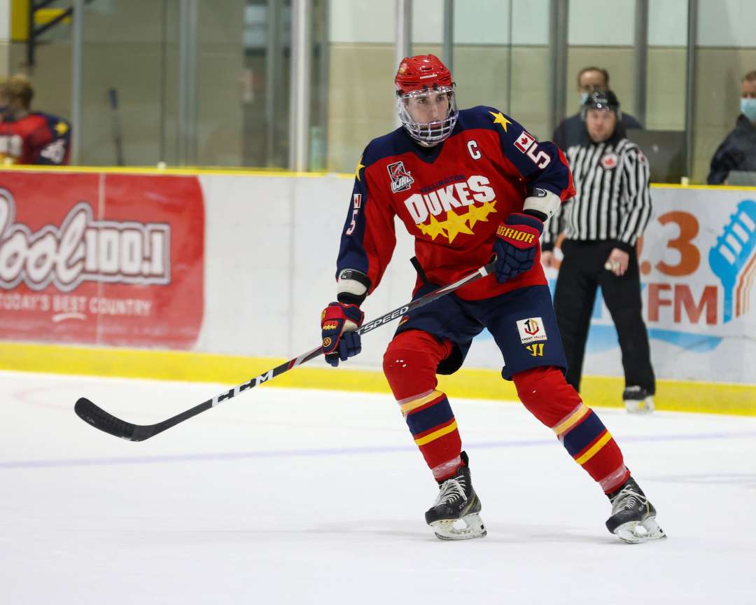 The Wellington Dukes scored late in regulation time to force overtime before the host St. Michael’s Buzzers prevailed 5-4 in Ontario Junior Hockey League action Thursday evening in Toronto.