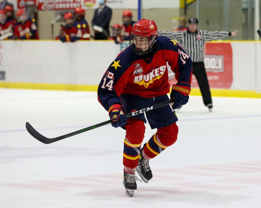For the second straight game at the Ontario Junior Hockey League Governors’ Showcase in Cobourg, two goals were enough for the Wellington Dukes to emerge victorious.