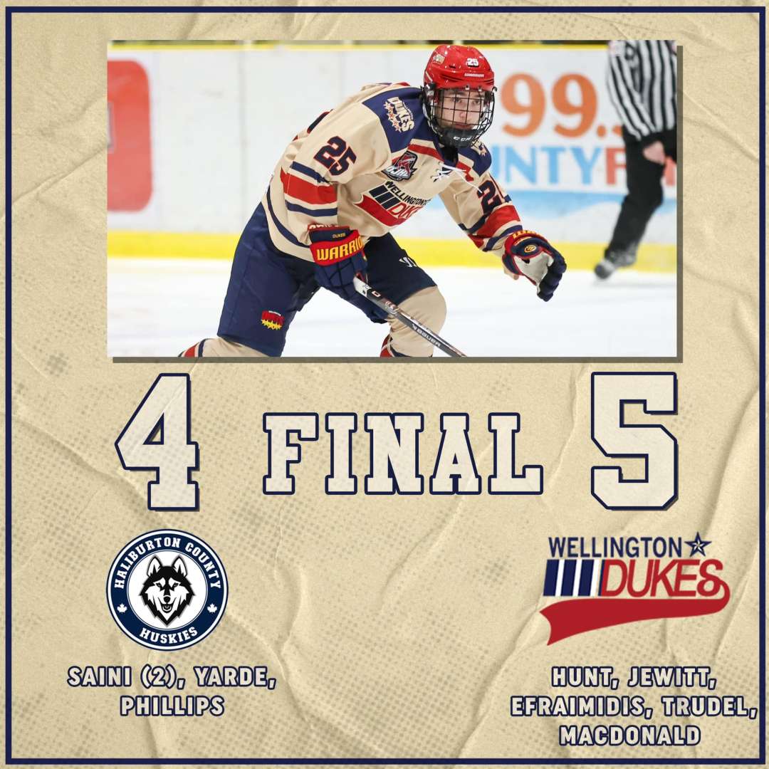 A wild and wacky victory for the Wellington Dukes sealed a season series split with the Haliburton County Huskies on Sunday.