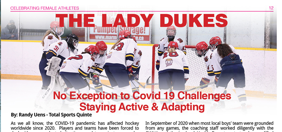 Even during lockdown, the players continued to communicate via social media to keep each other motivated and accountable to continue to train, however they could. Outdoor rinks and indoor gyms became the new norm and the players challenged each other to stay active. We are so proud of how our players have excelled while learning game strategies for 3 on 3 play, 4 on 4 play and now modified 5 on 5 play. Since September, the Lady Dukes have played 21 games, with a record of 13 wins, 6 losses and 4 ties. With the lockdown lifted in February, the Lady Dukes are currently playing an 8 game exhibition series with their rival, the Kingston Ice Wolves. Current games consist of 5 on 5 play, with continued play and no face-offs. While the Lady Dukes miss their fans, they are setting an example for the rest of the hockey community by continuing to play as if they were playing for a packed arena and working hard to push themselves to improve in all aspects of the sport. The team is hopeful that an extended season could allow them to play other teams and maybe even welcome some fans to the stands.