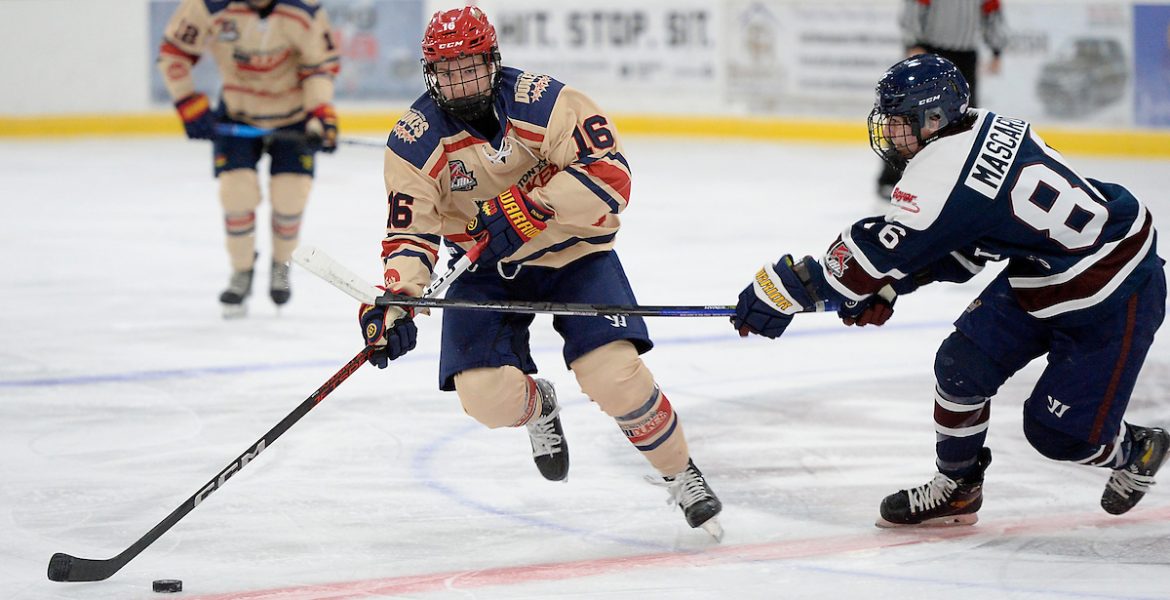 Nick DiPaolo of the Ontario Junior Hockey League’s Wellington Dukes (photo credit – Shawn Muir | OJHL Images) has confirmed his commitment to join the NCAA Division I Niagara University Purple Eagles in Lewiston, NY .